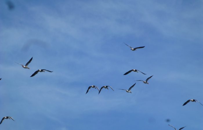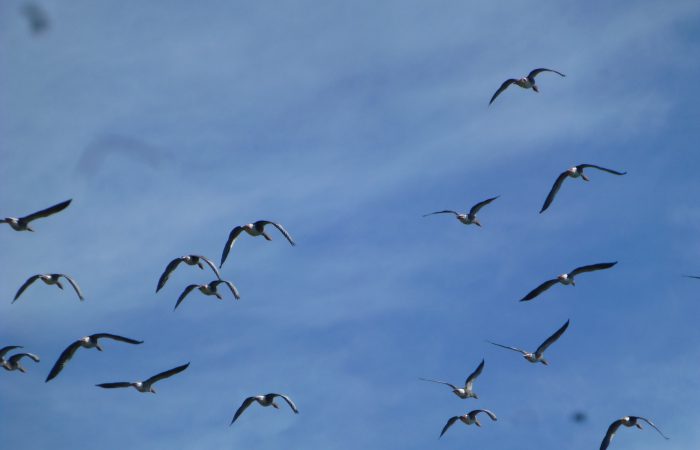 Ein Schwarm Graugänse zog mit viel Geschnatter auf dem Weg nach Süden im Formationsflug über uns hinweg.