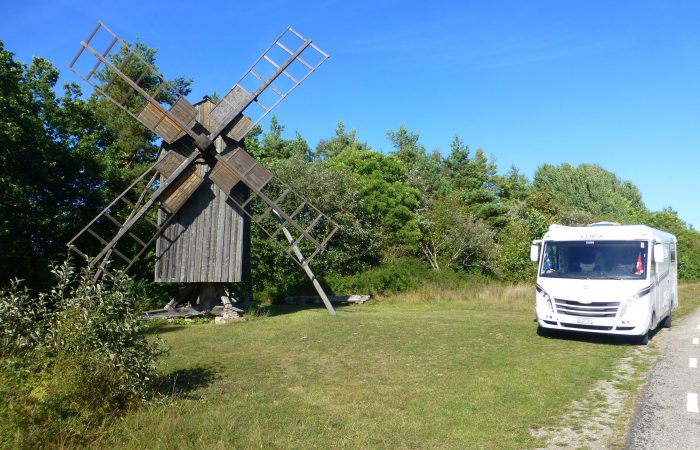 Auf dem Rastplatz neben weiteren alten Mühlen stehen wir prima. Hier ging die Sonne allerdings hinter Bäumen unter, auch schön.