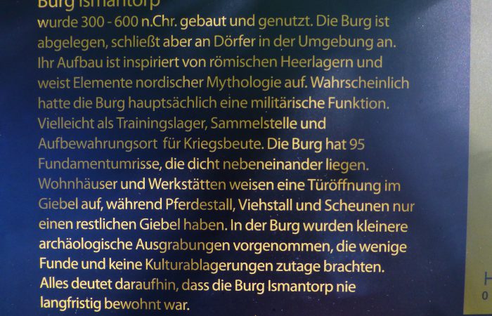 Dann besichtigten wir die Burganlage Ismantorp aus der Eisenzeit, 300 – 600 n. Chr. Innerhalb einer Ringmauer sind die Fundamente der etwa 95 Behausungen erkennbar.
