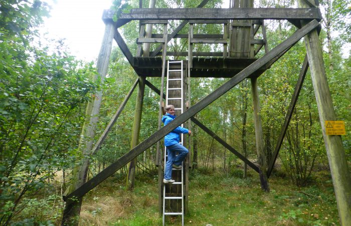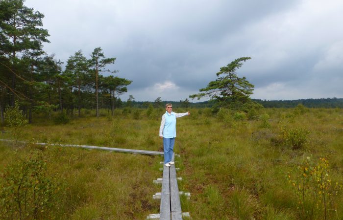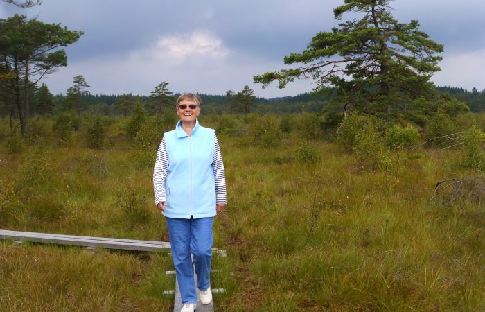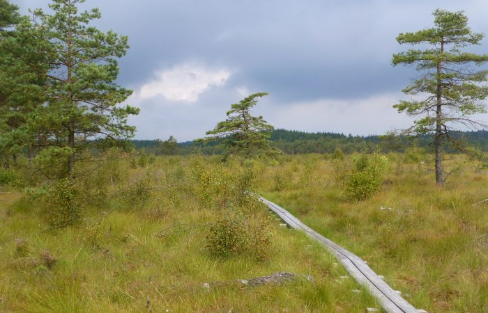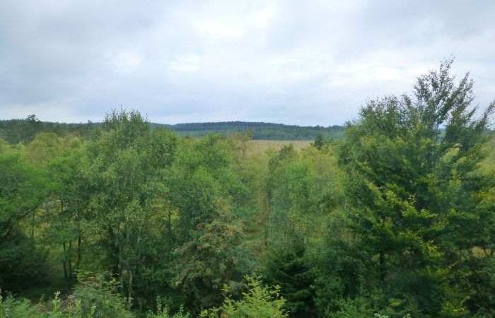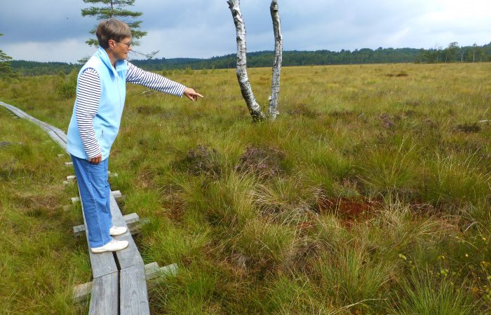 einmal einen Spaziergang in dieser interessanten Moorlandschaft. Ganz in der Nähe war ein Aussichtsturm, doch nicht hoch genug, um über die Bäume schauen zu können.