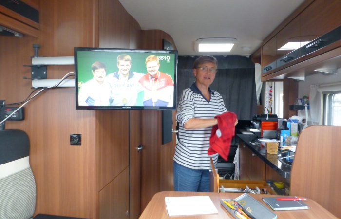 Unser guter Vorsatz, uns am Nachmittag zu bewegen und noch einmal in den Ort zu wandern, fiel also ins Wasser. Unser Sport fand heute beim Olympia-Fernsehen statt.
