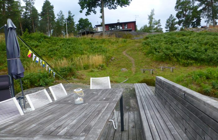 zu haben. Das Sommerhaus ist traumhaft gelegen, auf Felsen gebaut und mit Sicht auf den eigenen Bootsplatz und die schwimmende