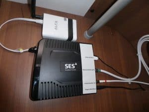 Ebenfalls in diesem Schrank ist die Elekronik der Satellitenanlage für Internet und TV von Crystop . . .