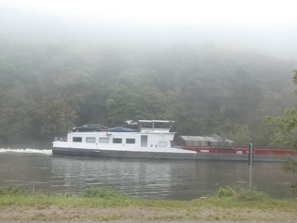 Wir haben wunderbar geschlafen beim «Alten Fährhaus» an der Saar. Morgens ziehen noch einige Nebelschwaden über das Wasser.