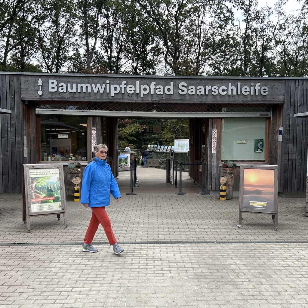 Wir begeben uns zum Baumwipfelpfad von dem die Saarschleife am besten zu sehen sein soll. Der Eingangsbereich ist sehr grosszügig und auf reichlich Besucher ausgerichtet.