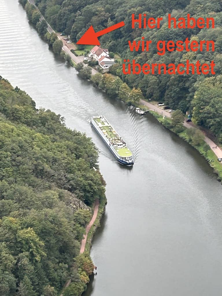 Nach einer Fahrt über die Höhe mit einer tollen Weitsicht kommen wir hinunter ins Tal der Saar und später an die Mosel.