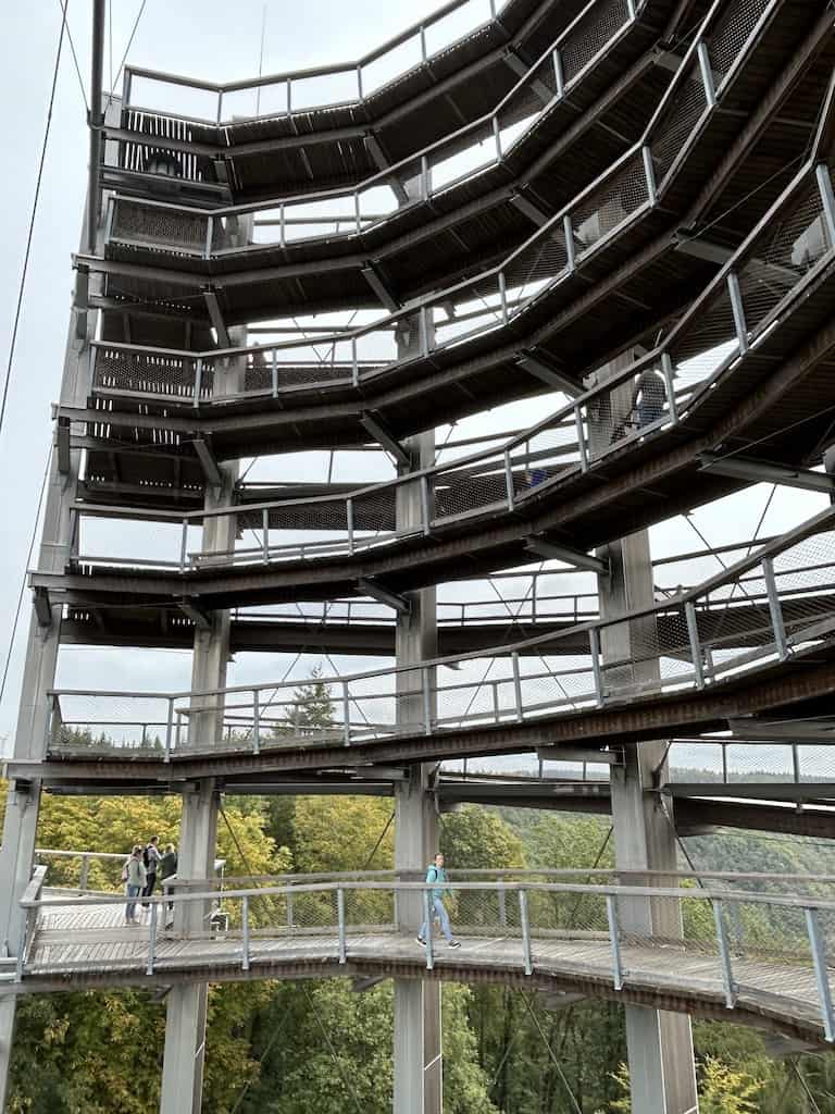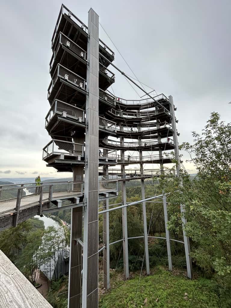 Auf einer Länge von 1’250 Metern und einer Höhe von 3 bis 23 Metern schlängelt sich der Baumwipfelpfad durch und über einen Wald mit Buchen, Eichen und Douglasien in Richtung Saarschleife. Unsere Eindrücke sind in folgender Bildgalerie zusammengefasst.