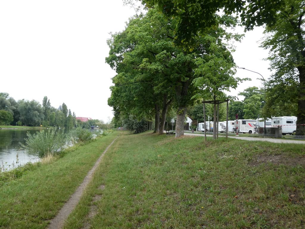 Wir haben erstaunlich gut geschlafen. Der Stellplatz liegt an der Isar. Ein riesiger Parkplatz schafft genug Abstand zur Strasse, sodass man den Lärm kaum hört.