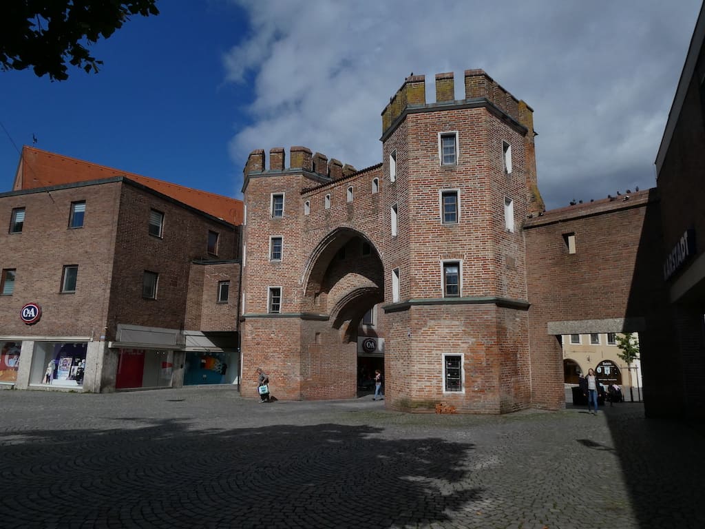 Erst gegen 17 Uhr wagen wir uns mit Regenjacke und Schirm ausgerüstet zu unserem Gang in die Stadt. Über das Ländtor, ein Stadttor aus dem Mittelalter, kommen wir in die Altstadt. Landshut erlebte seine Blütezeit im 14. und 15. Jahrhundert.