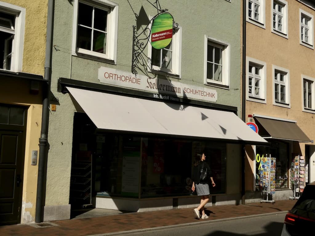 Wir gehen noch einmal in die Innenstadt. Diesmal eher zum Einkaufen, als zum Fotografieren. Hauptsächlich wegen neuer orthopädischer Hausschuhe für Renate, da die alten gebrochen sind. Michaels Klebe-Reparatur hält zwar erstaunlich gut, aber trotzdem wollen wir neue besorgen. Gestern war dieser Laden zu. Heute haben wir mehr Glück und werden auch fündig.