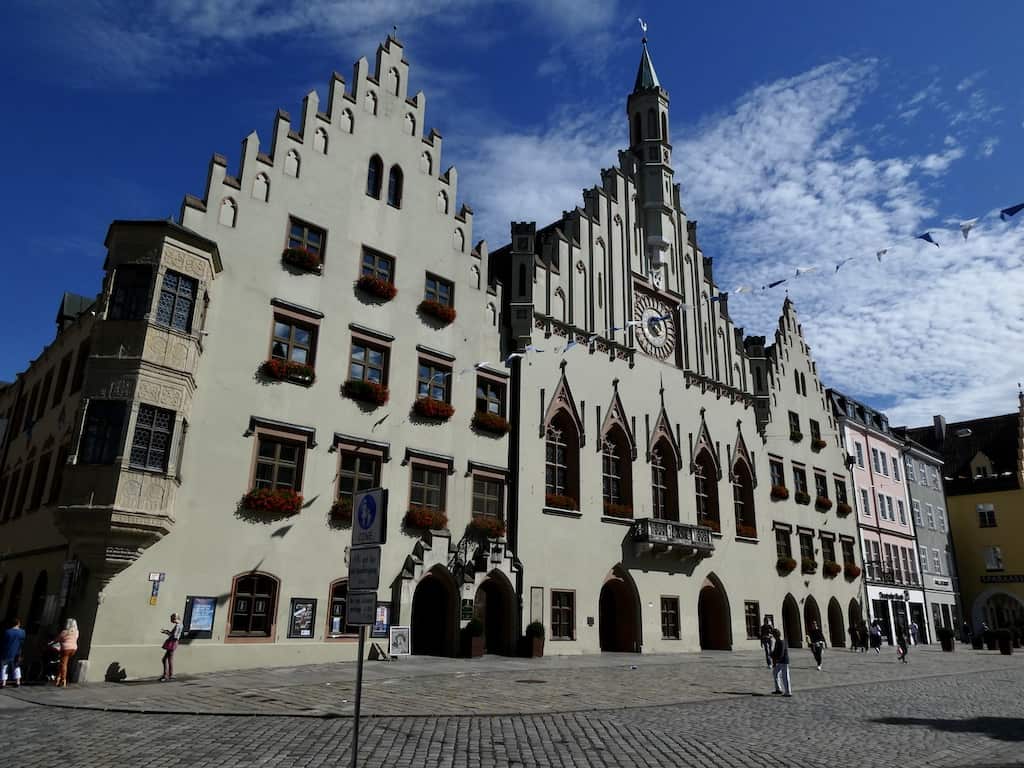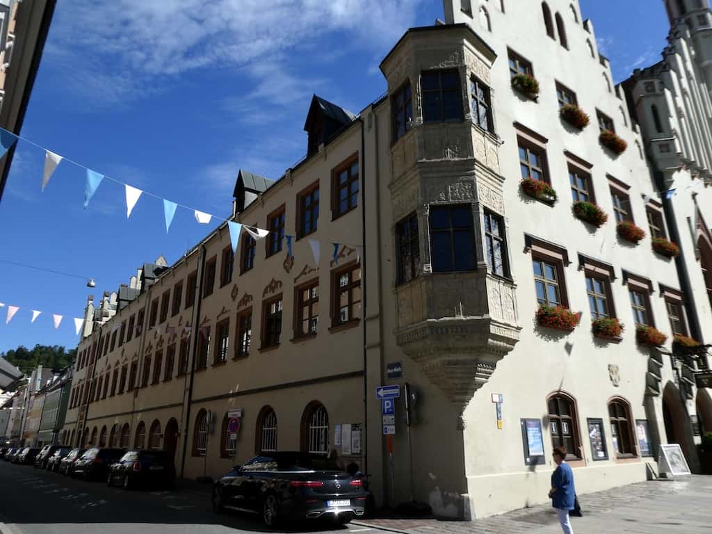 An diesem gewaltigen Rathausgebäude kommt Michael auch beim x-ten Mal nicht ohne Foto vorbei. Das Gebäude reicht weit in die Grasgasse hinein, wo auch «unser» Orthopädieladen liegt. Das Rathaus besteht ursprünglich aus drei Gebäuden: drei gotische Giebelhäuser, die zur Altstadt hin eine mächtige, seit dem Umbau von 1860, neugotische Fassade bilden.