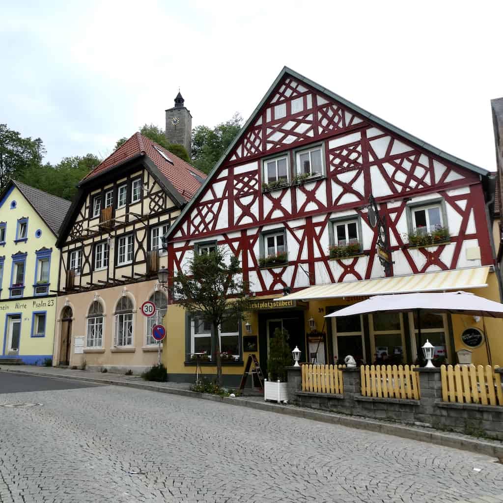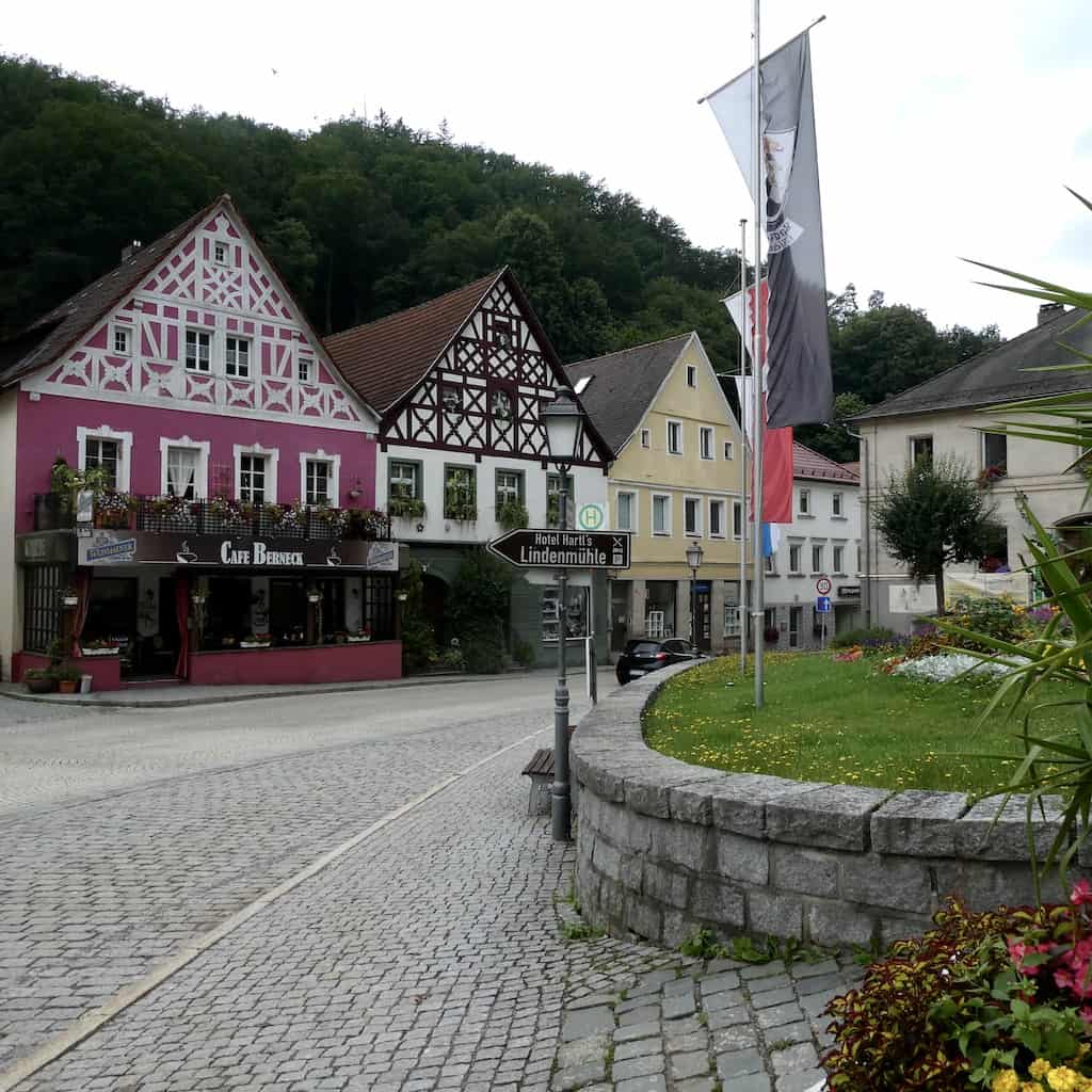 Bevor wir Bad Berneck verlassen, schauen wir uns den Ort noch an. Er zieht sich elend lang durch das hier recht enge Tal des Weißen Mains.