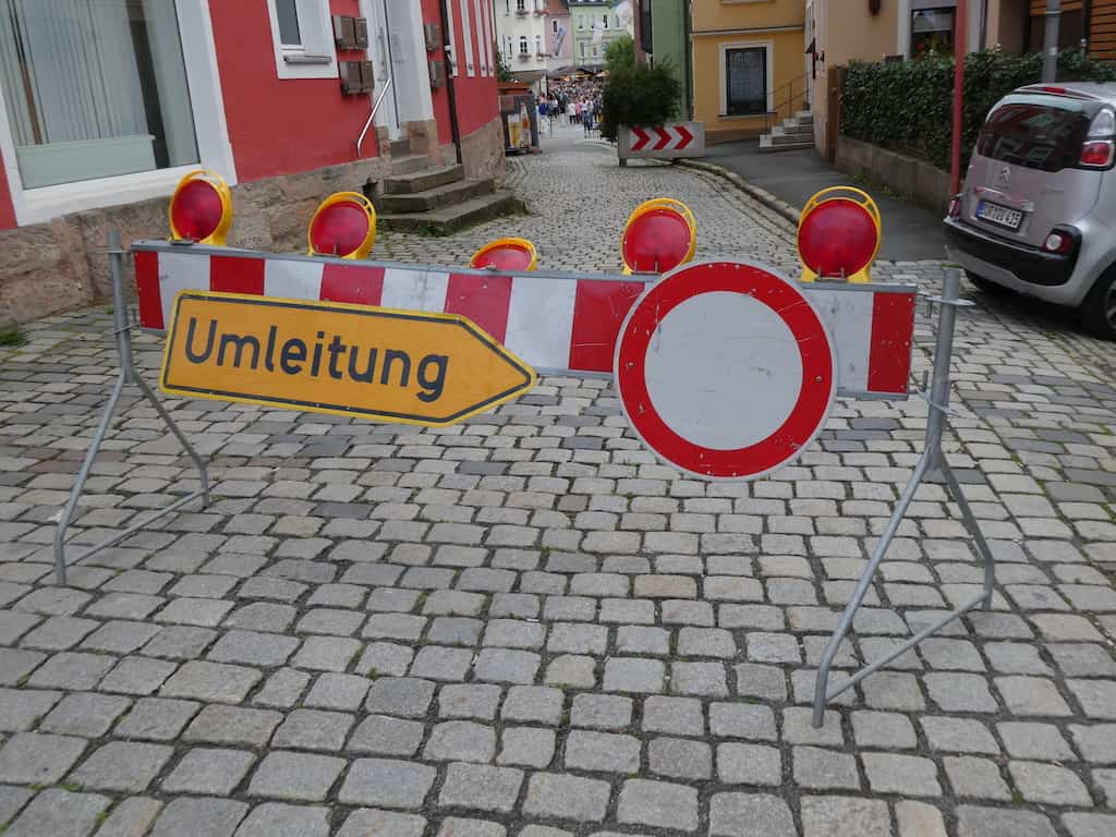 Zuerst müssen wir mit unserem Vehikel eine wilde Umleitung hoch und runter und durch enge Strassen bewältigen. Der Grund ist die «Bierwoche» in der Altstadt.