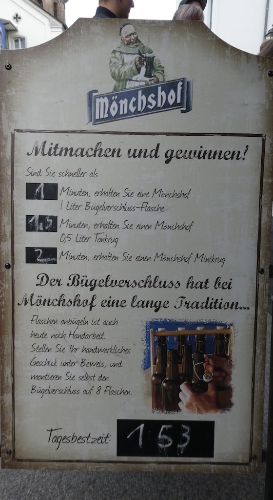 Man könnte noch lange Bildmotive finden, aber langsam werden die alten Beine müde. Wir stärken uns zwar noch an einem der Fressbuden. Im Bierzelt ist es für uns bei diesem ohrenbetäubendem Lärm einfach zu laut. € 10.70 kostet die Mass mit 1 Liter Bier. Dafür muss eine alte Frau lange stricken.