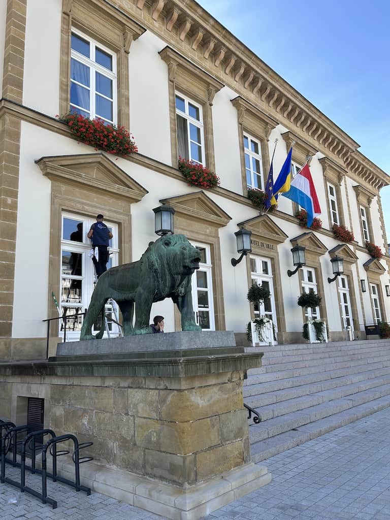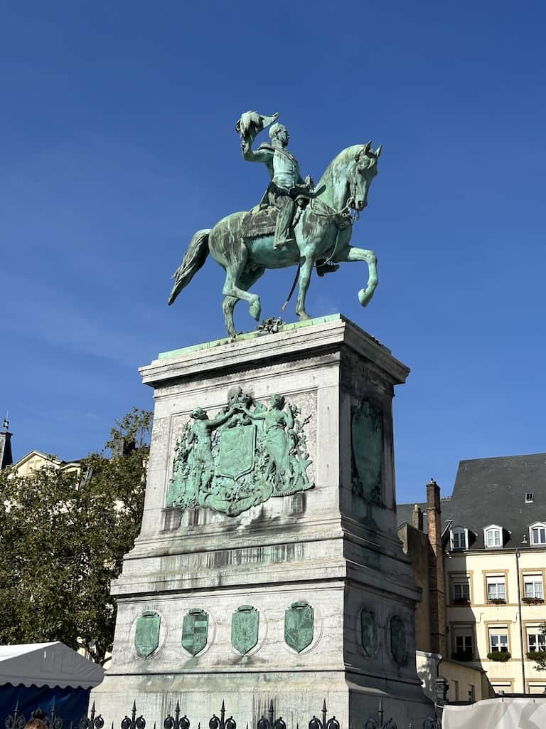 Das Rathaus, das Reiterstandbild, zu Ehren des Grossherzogs Wilhelm II von Oranien-Nassau, der zwischen 1840 und 1849 regierte und dem Grossherzogtum seine erste Verfassung gab. Das Erinnerungsdenkmal «Gelle Frau», erbaut im Gedenken an die im 1. Weltkrieg gefallenen Luxemburgischen Soldaten. Heute zum Symbol für Freiheit und Widerstand des Luxembourger Volkes geworden.