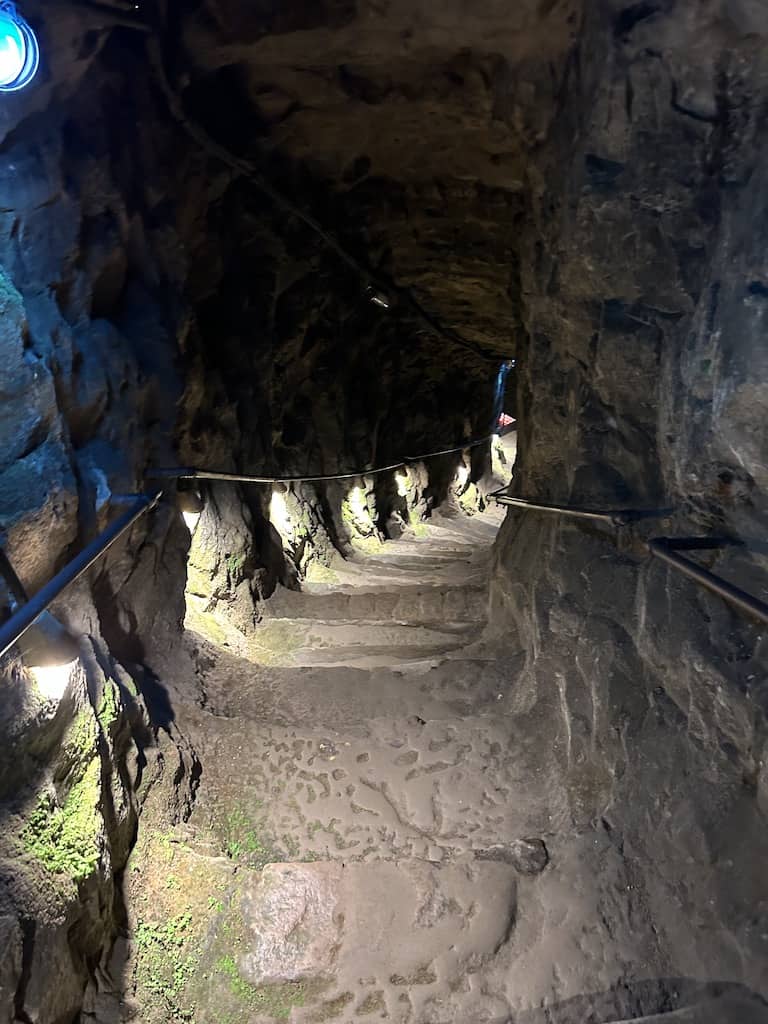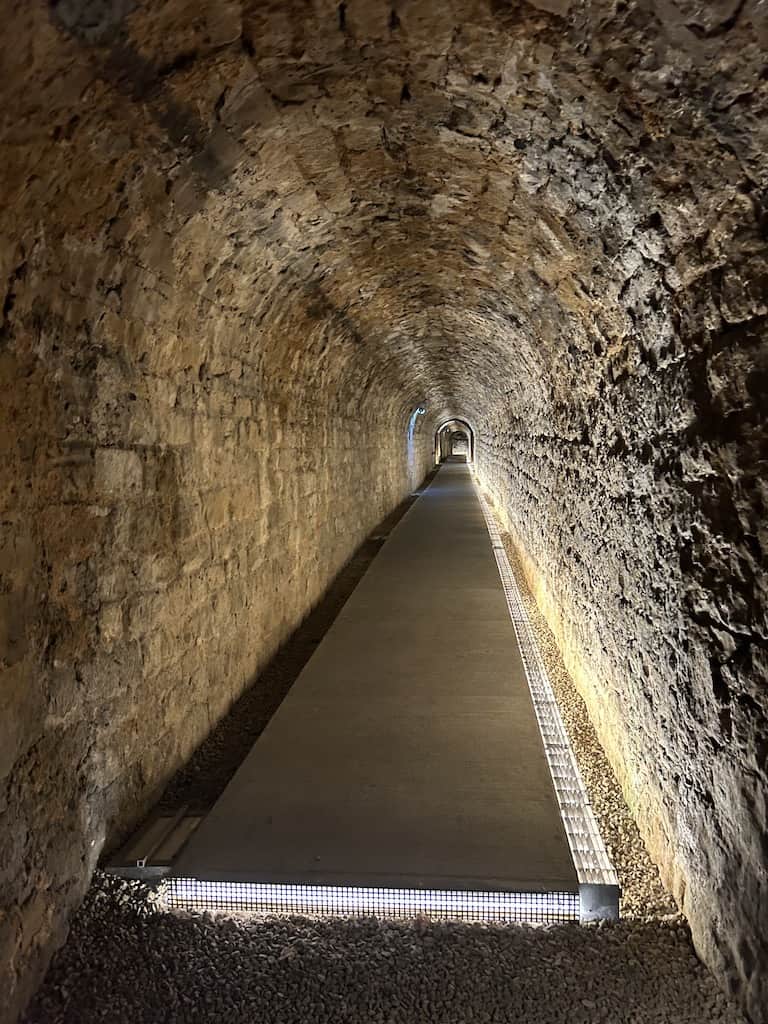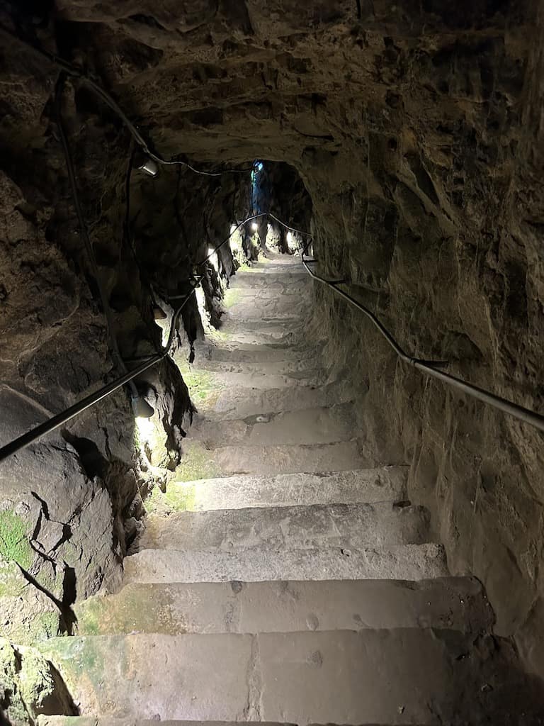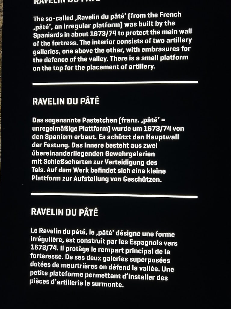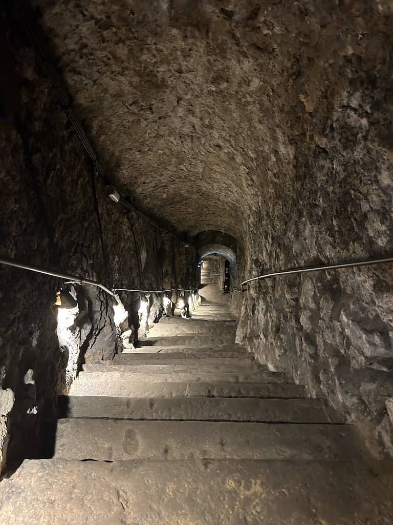 Im Untergrund der Stadt gibt es ein grosses Höhlensystem von ehemals 23 Kilometern Länge. Dieses Festungswerk wurde während der spanischen, französischen und österreichischen Herrschaft gegraben oder aus dem Fels gesprengt. Teile davon sind heute wieder zugänglich. Michael macht eine geführte Tour durch die Pétrusse-Kasematten mit. Im Untergrund führen lange Gänge und 242 Stufen zu einem Ausgang unten beim Flüsschen Pétrusse. Hier eine Bildfolge aus dem Untergrund: