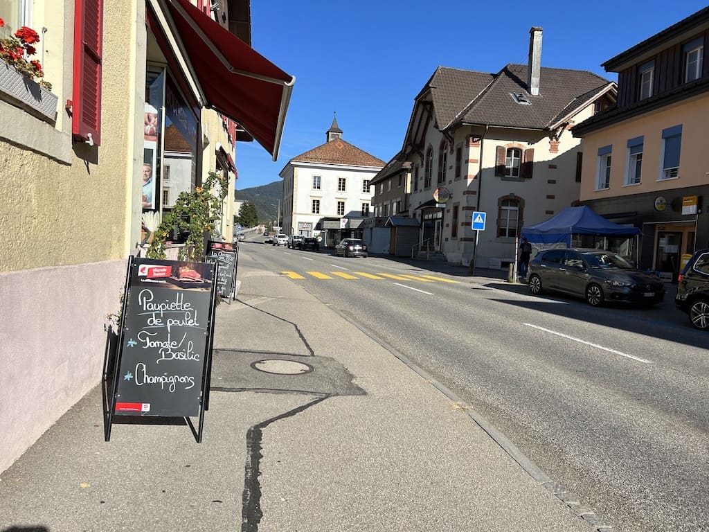 Wir brauchen heute unbedingt einige Lebensmittel. Wenn wir in Corgémont fündig werden, wollen wir eine weitere Nacht hierbleiben.