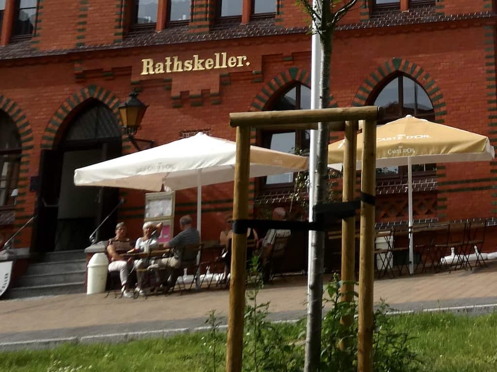 In Zahna kommen wir endlich an einem Eiskaffee vorbei. Da halten wir natürlich an. Im Ratskeller können wir uns unserer Sucht hingeben.  Es gibt hier wirklich ein vorzügliches Eis, das wir nur weiterempfehlen können.