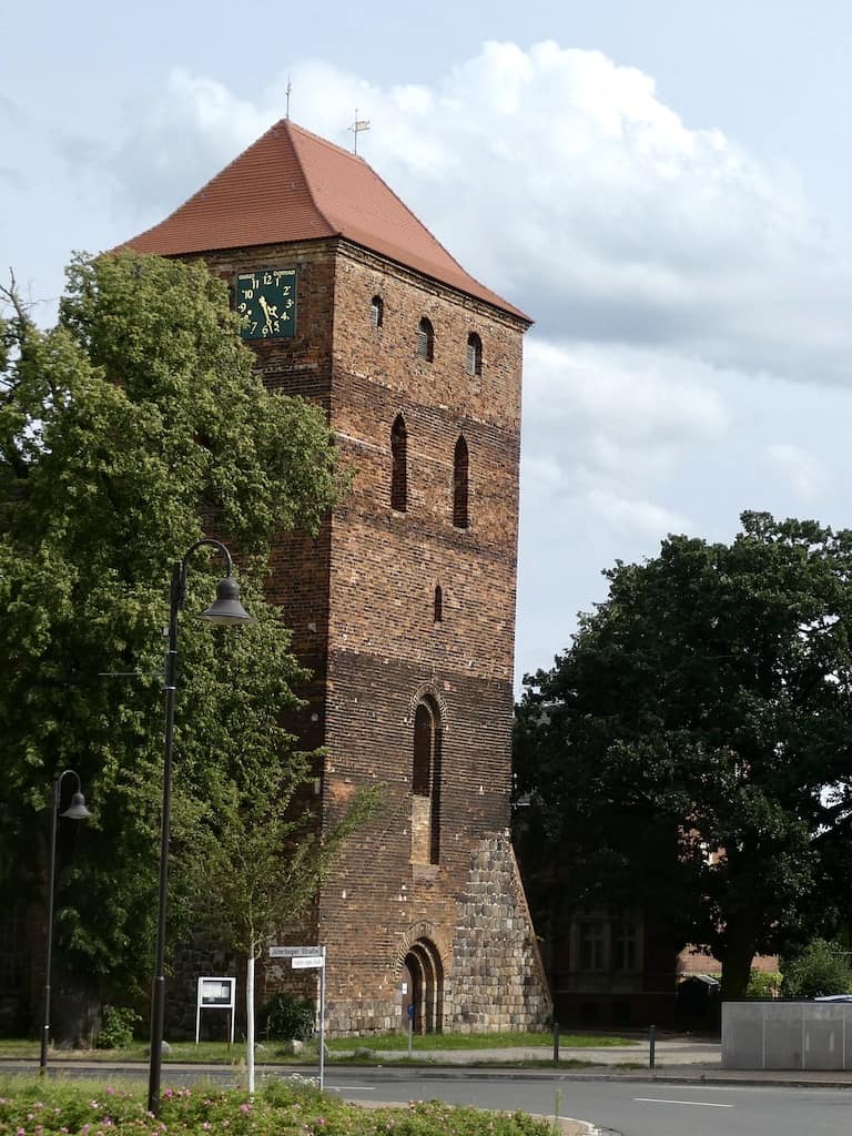 Schräg vis-a-vis steht die denkmalgeschützte Kirche St. Marien. Vom ursprünglichen Bau aus dem Jahr 1200 sind das Querschiff, sowie noch die Gründung des Turms erhalten.