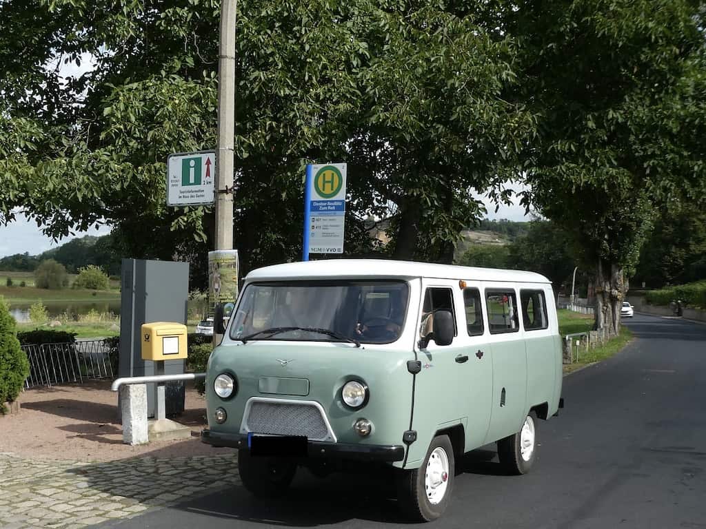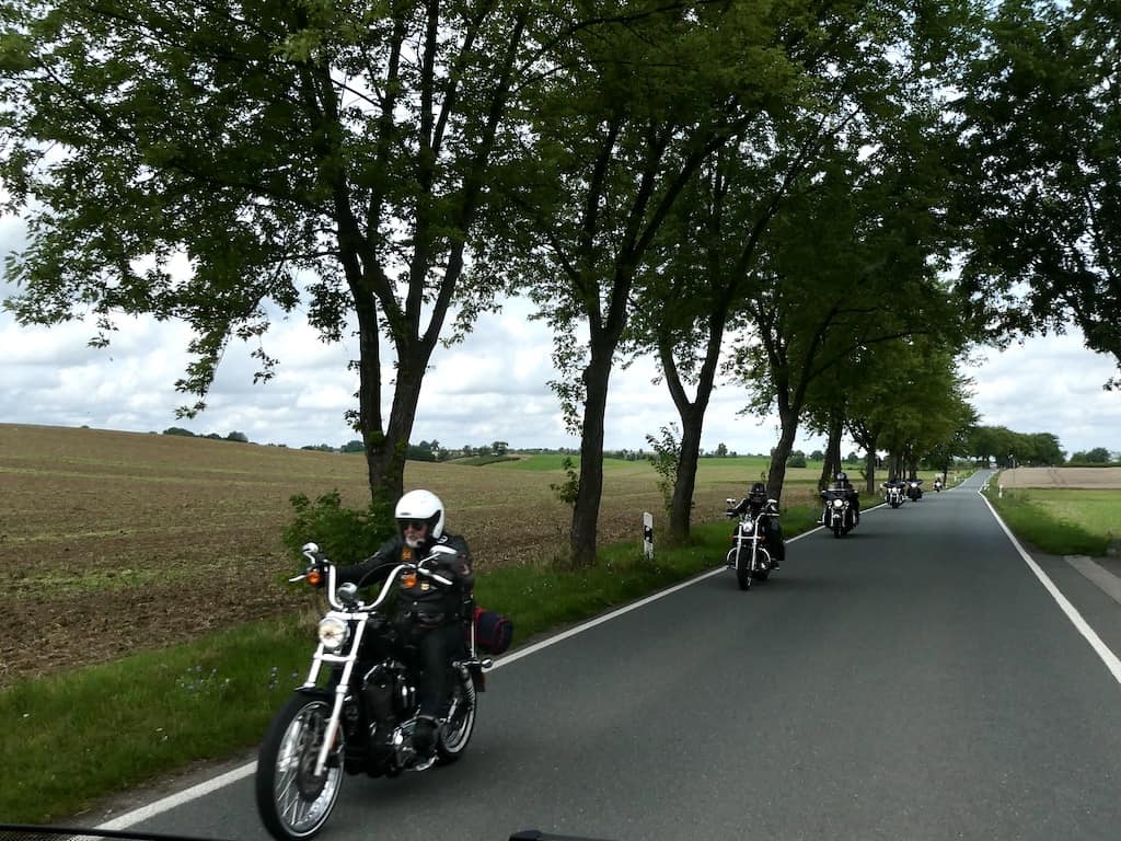 Motorradfahrer und Oldtimer sind auch unterwegs.