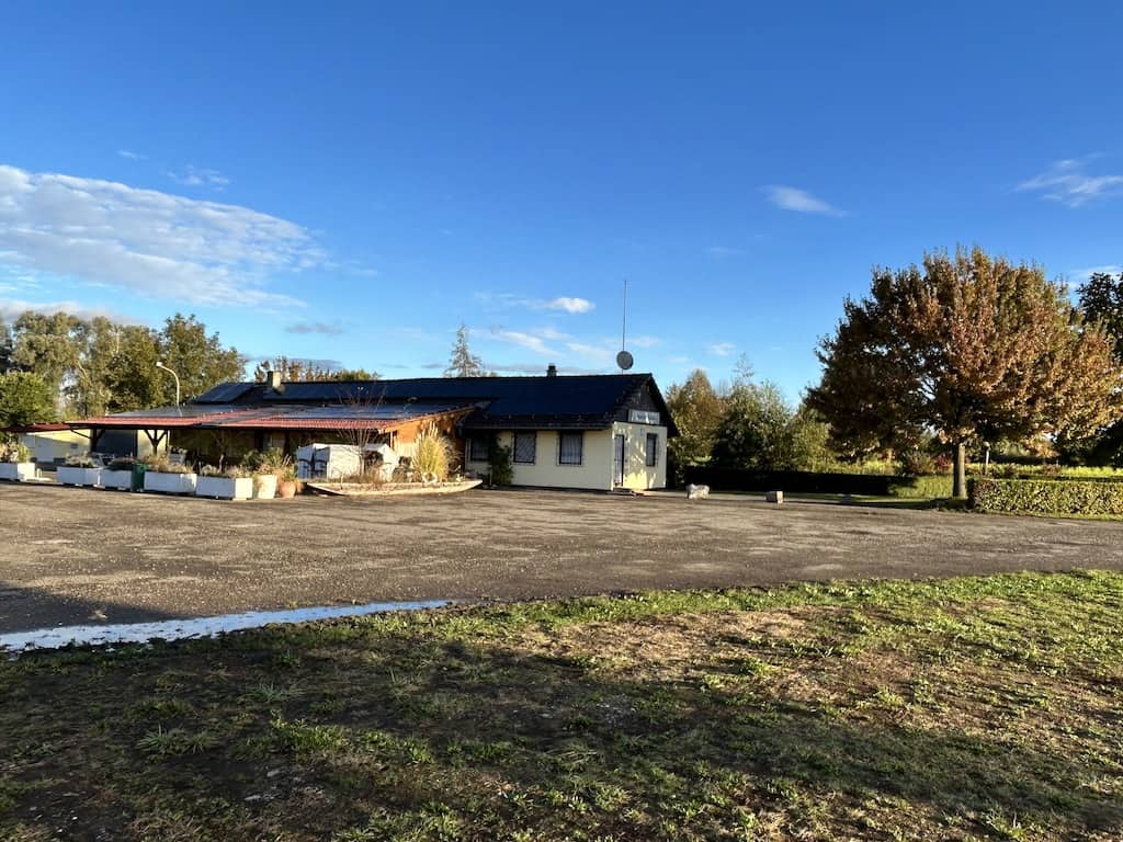 Das Wetter ist nicht eindeutig. Über dem Schwarzwald hängen dicke Regenwolken. Unser erstes Ziel ist ein LMC-Händler in Bad Krozingen/Biengen. Dort holen wir ein Ersatzteil für unseren beweglichen Tisch ab: Eine kleine Gleitschiene aus Kunststoff, die Michael selbst ersetzen kann.