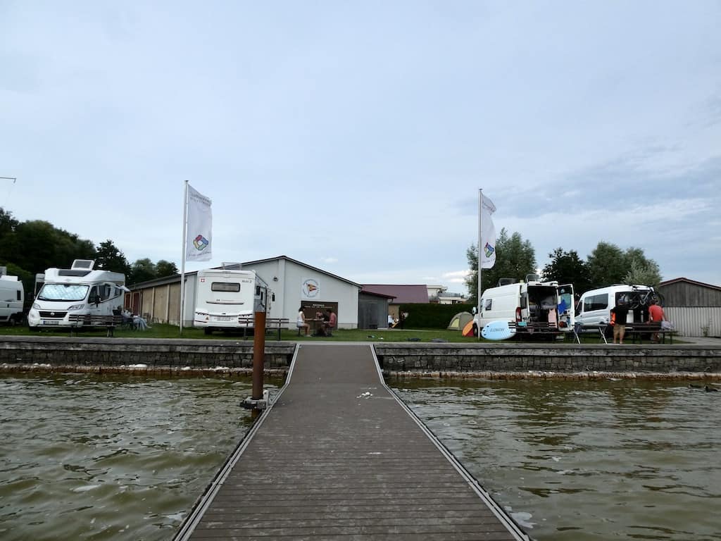Endlich beim Stellplatz angekommen, erwischen wir den letzten freien Platz direkt am Wasser. Es ist heute wieder sehr heiss.