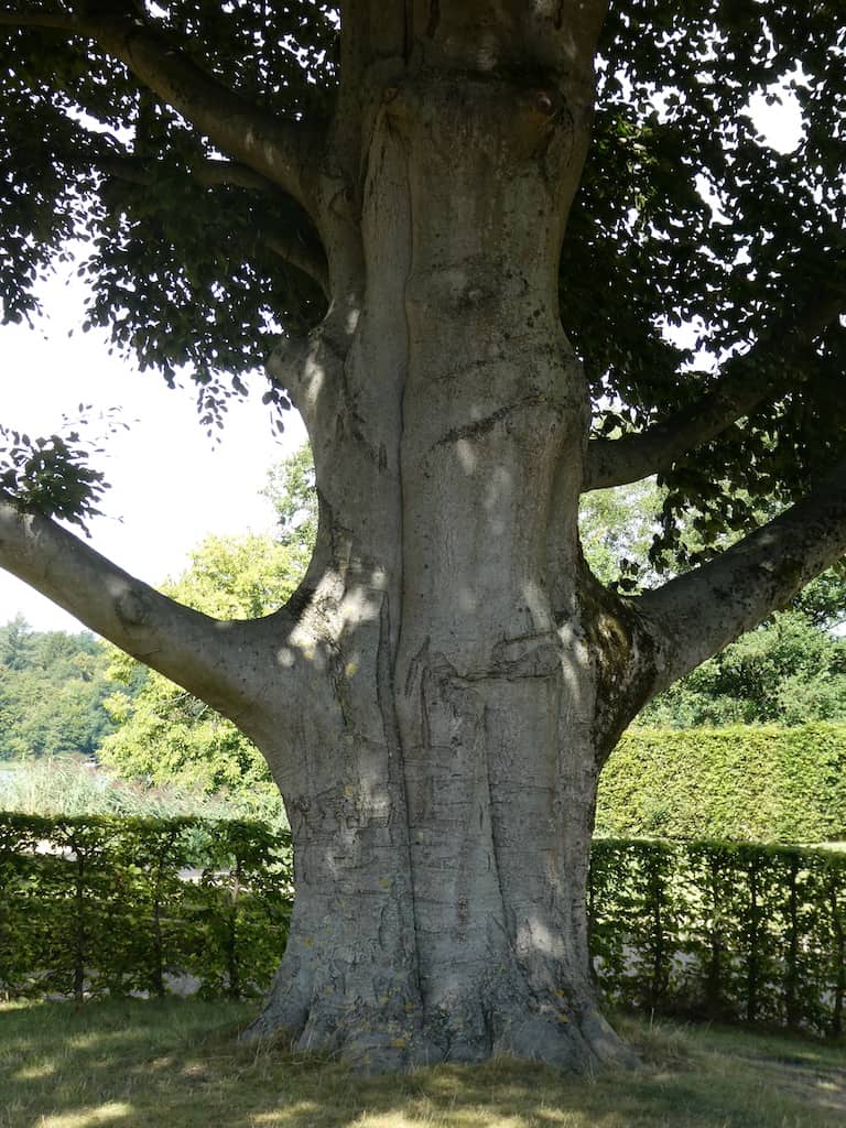 Die mächtige Rotbuche finden wir ebenso imposant wie das Schloss. Wenn sie die Geschichte erzählen könnte.