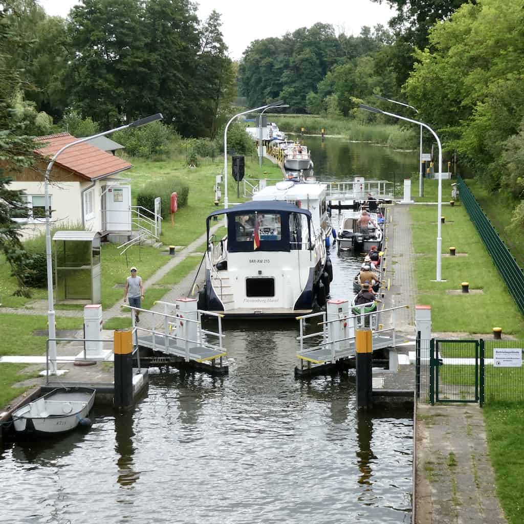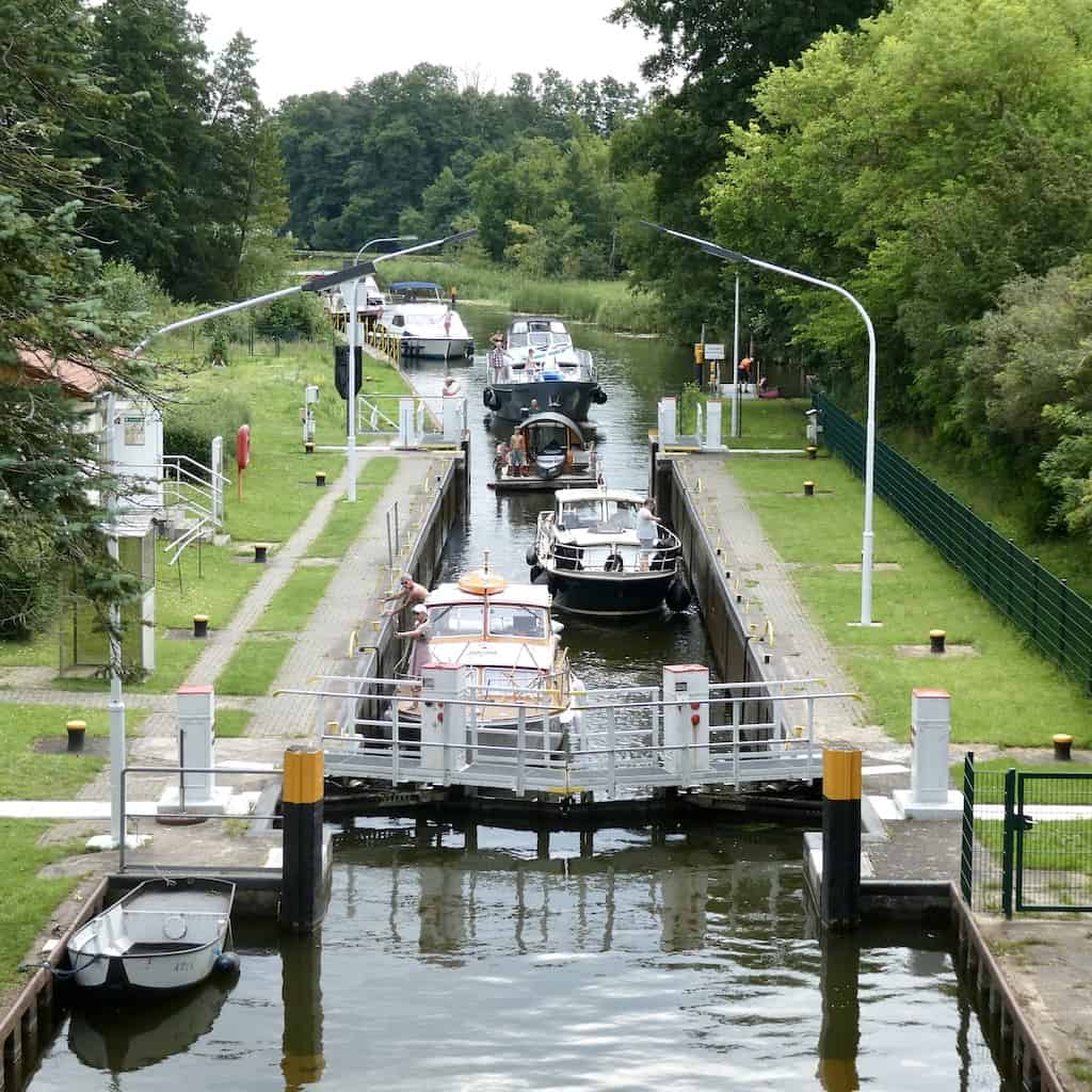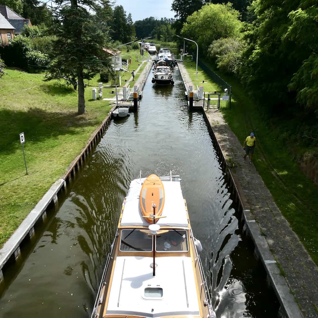 Wir fahren weiter durch die Strelitzer Seenplatte. Bei Canow schauen wir eine Weile beim Schleusen zu.