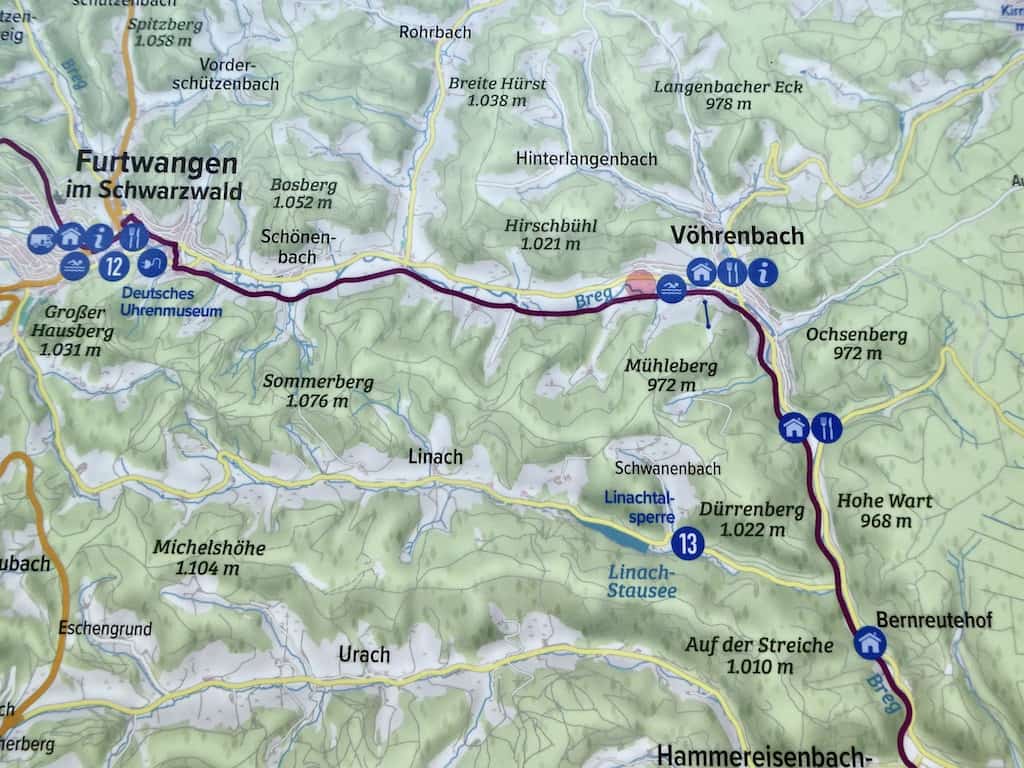 Vöhrenbach liegt im Tal der oberen Breg. Dies ist, neben der Brigach, einer der Donau-Quellflüsse. Morgen soll unsere Erkundungstour weitergehen.