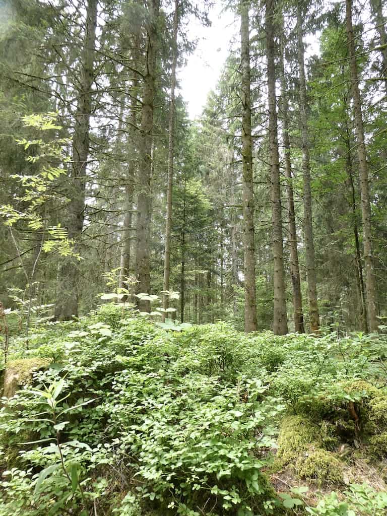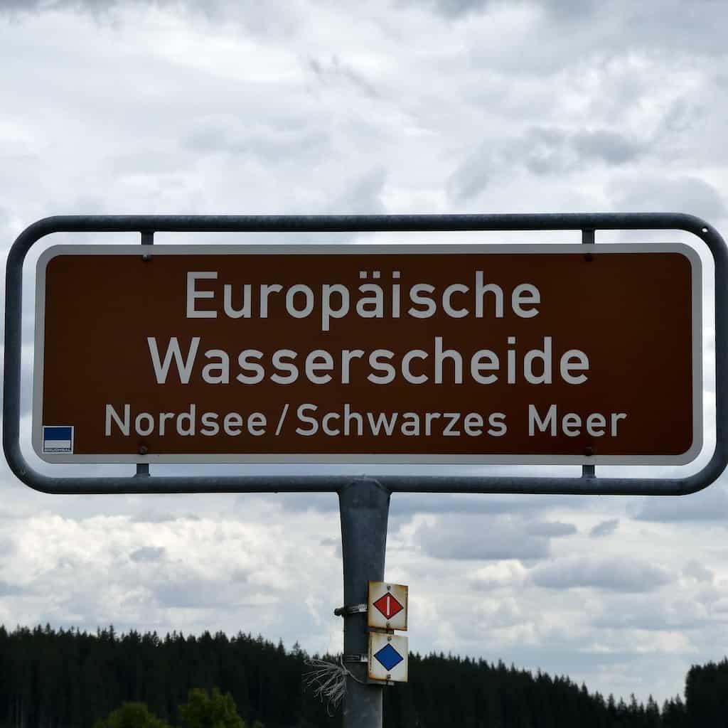 Auf 1020 m.ü.M. kommen wir zur Wasserscheide Nordsee/Schwarzes Meer. Hier kreuzen sich auch viele Wanderwege. Für uns ist die Wanderung zu einem 800 Meter entfernten Aussichtturm gerade recht. Erstmals seit Wochen, so scheint uns, ist der Himmel wieder. einmal wolkenverhangen.