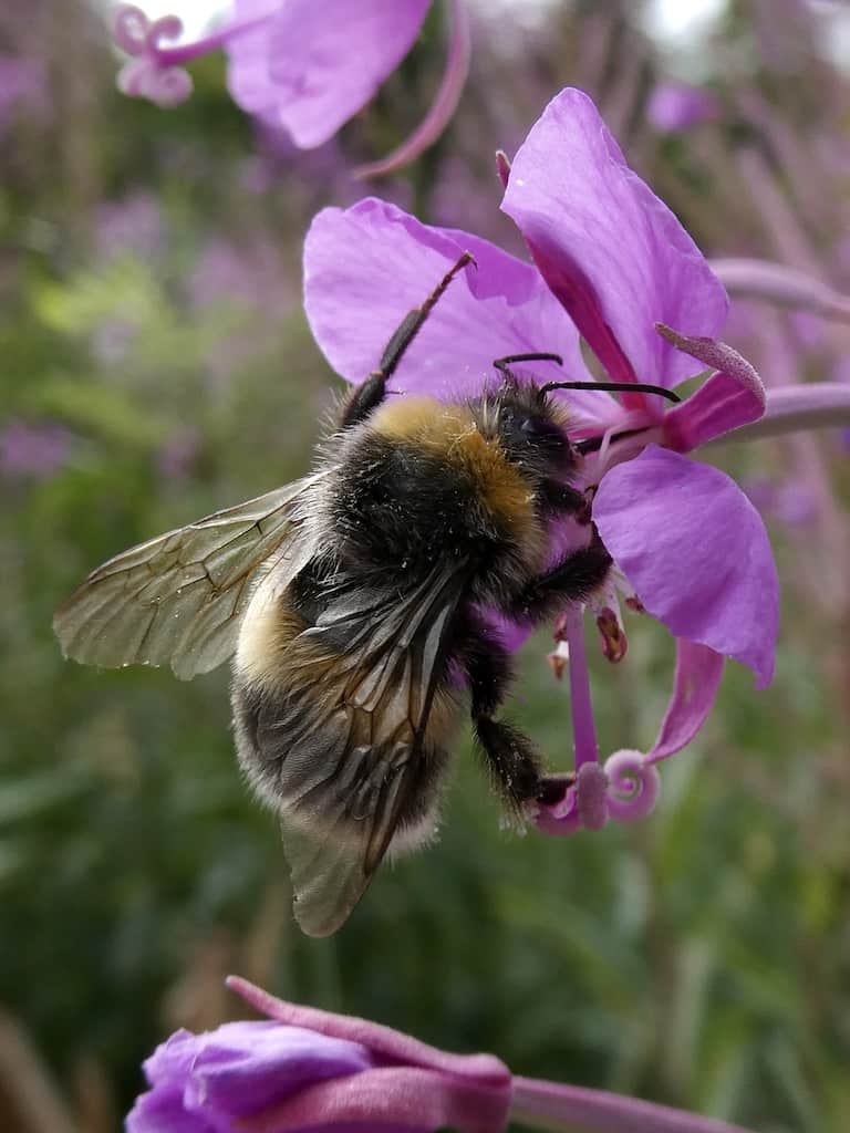 Blutweiderich oder Blutkraut ist im Schwarzwald eine sehr verbreitete Pflanze. Die ist hübsch anzusehen, gilt aber als invasiv und soll sich anscheinend auf die Tierwelt wie auch die Landwirtschaft negativ auswirken. Dieser Biene scheint sie aber zu gefallen.