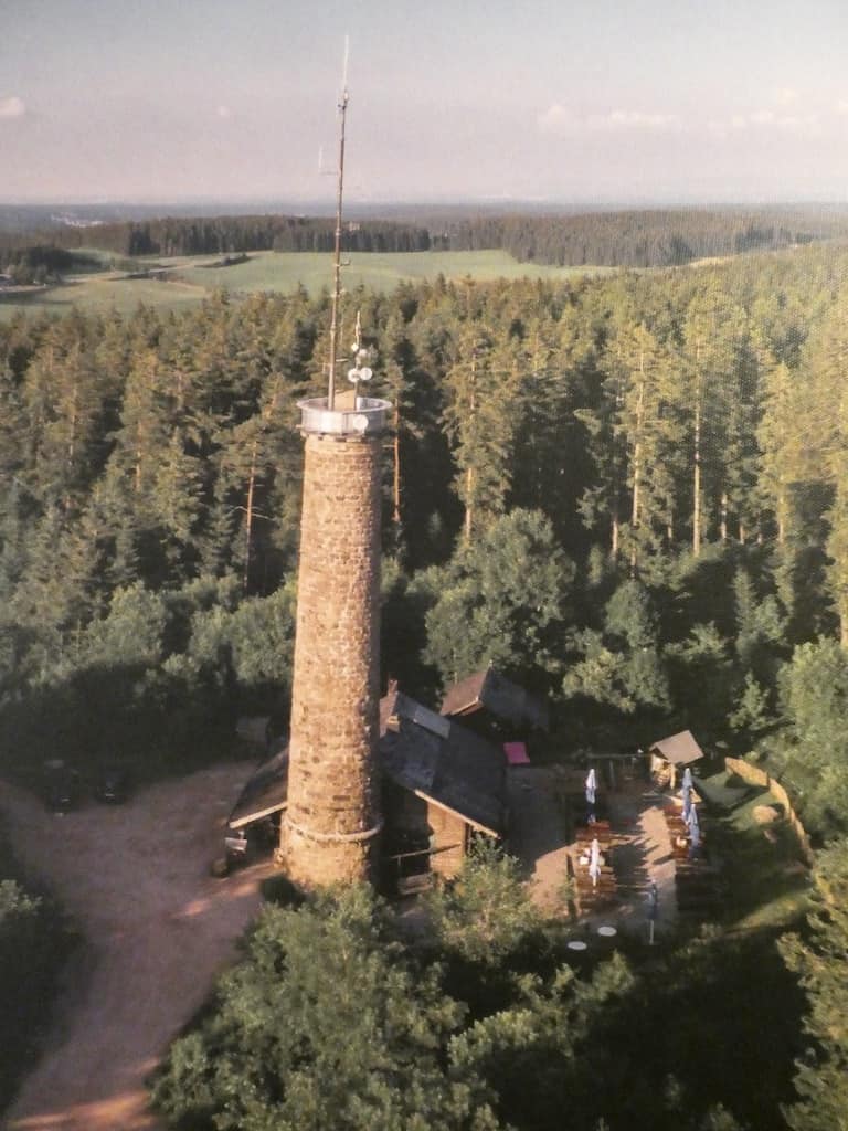 Der Aussichtsturm wurde Ende 18. Jh. aus massivem Buntsandstein erbaut. Später kam ein Rasthaus dazu.
