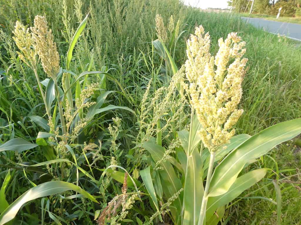 . . .und wir entdecken grosse Felder mit Mohrenhirse, auch Zuckerhirse, Besenhirse oder Sorghumhirse genannt. Dieses Getreide wird als Mehl und als Viehfutter verwendet.