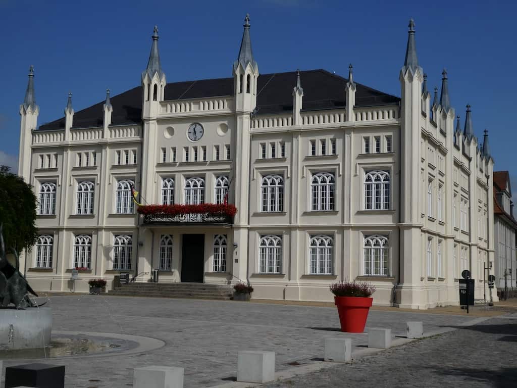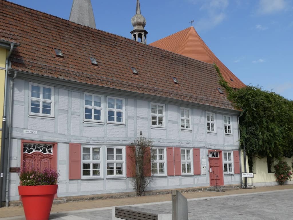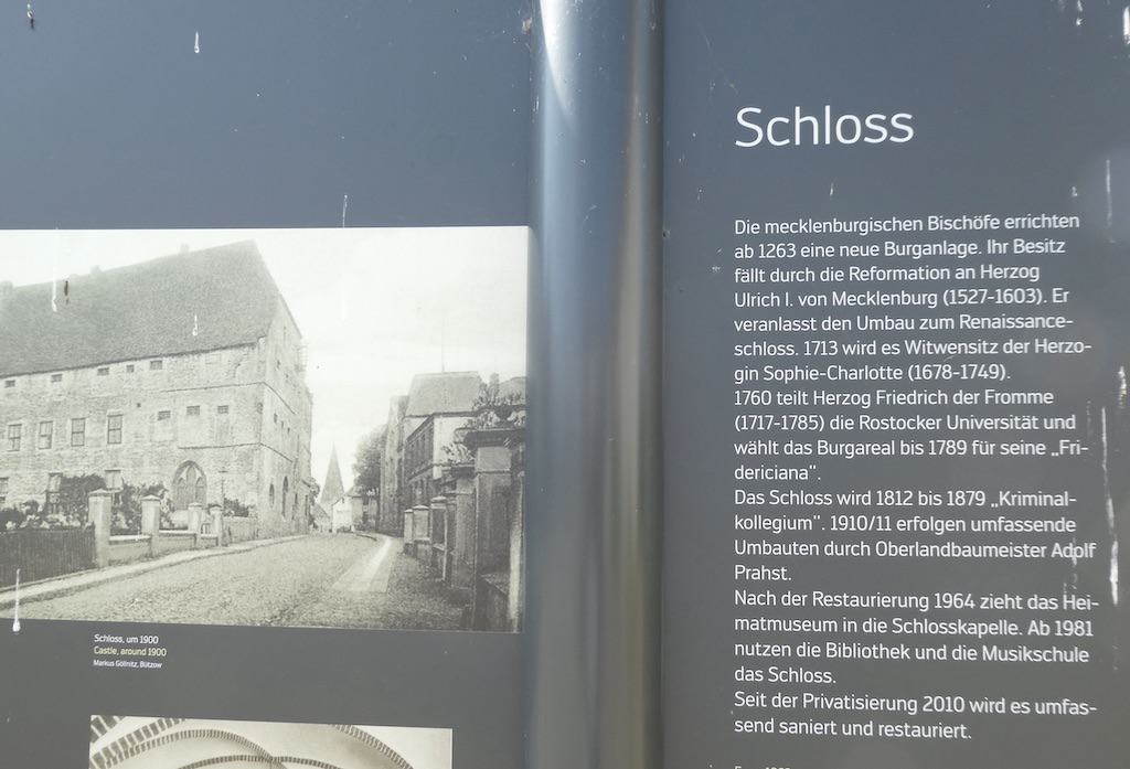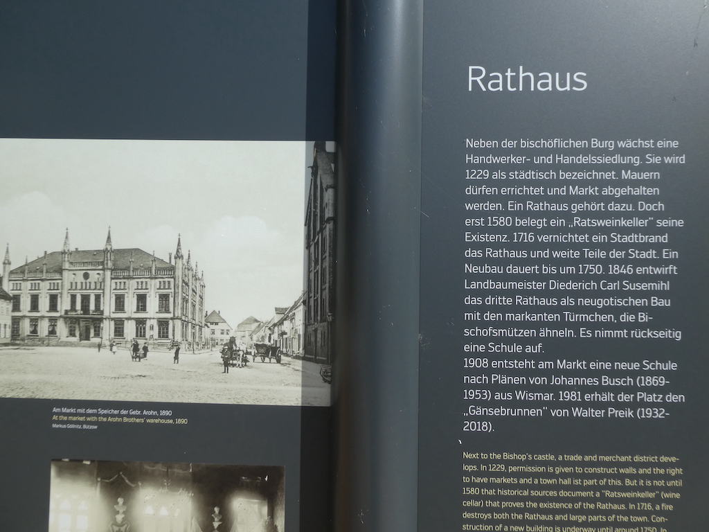 Vorher schauen wir uns in Bützow noch einige der historischen Bauten im Original an, die wir gestern auf dem Stellplatz im Massstab 1: 10 sehen konnten. Hier das Rathaus