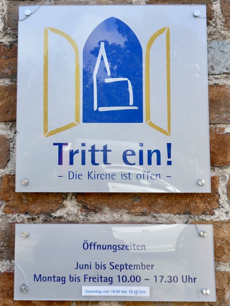 Die evangelische Kirche hätten wir gerne von Innen besichtigt, aber einmal mehr ist diese nur sehr eingeschränkt geöffnet. Vonwegen: Tritt ein! – Die Kirche sei offen -.