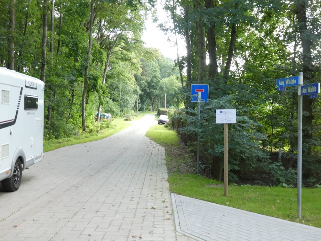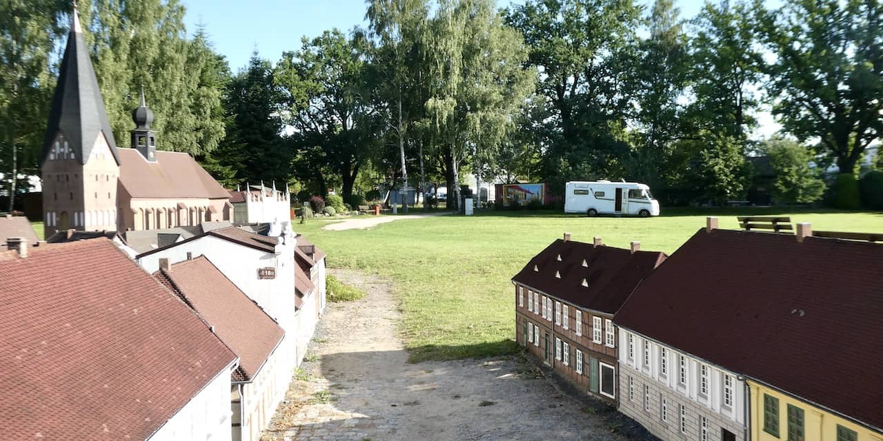 Wir verlassen den Stellplatz in Bützow nicht ohne ein letztes Foto der Miniaturstadt und dem Mobi im Hintergrund zu schiessen. Die letzte Nacht standen wir auf einem der offiziellen Parzellen. Es war ja gestern nicht mehr so heiss wie am Vortag.