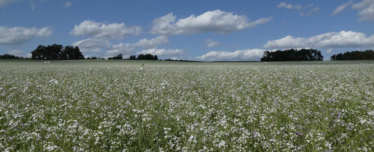 Wir kommen an einem riesigen Feld mit unbekannten weissblühenden Pflanzen vorbei. Was das wohl ist?