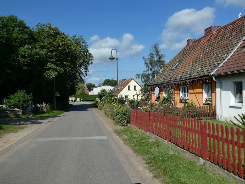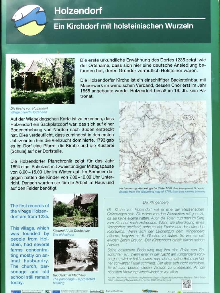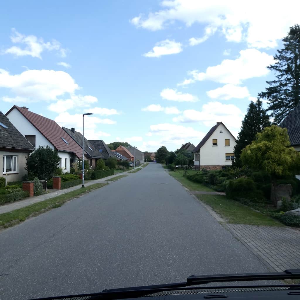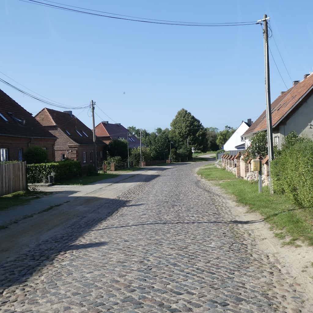 Wir lassen uns wieder einmal von unserem Navi leiten. Er sucht den direkten Weg über Land, teilweise auf grenzwertigen Strassen. Die Landschaft ist aber grandios. Sehr hügelig, viel Wald, viel Landwirtschaft, viele Alleen, auch viele alte Strassen, zum Teil mit Kopfsteinpflaster oder unbefestigt. So erreichen wir heute auf Renates Spurensuche das dritte Holzendorf. Von Renates Schwester haben wir jedoch neue Angaben aus dem Tagebuch der Mutter und diesmal sind wir zuversichtlich, den richtigen Ort zu finden.