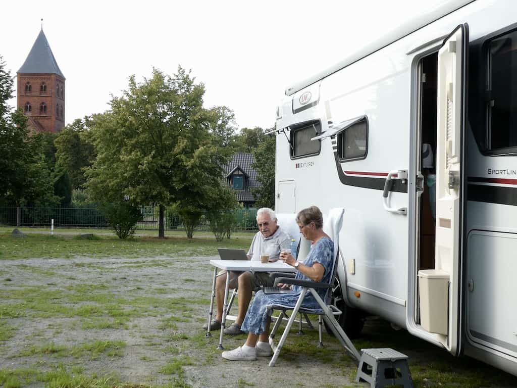 Auch in Diesdorf waren wir 2019 schon einmal. Allerdings ist inzwischen ein neuer Stellplatz entstanden mit Ver- und Entsorgung und Stromsäulen. Die Temperatur ist heute sehr angenehm. Wir können noch lange im Freien sitzen, bis es uns doch zu frisch wird.