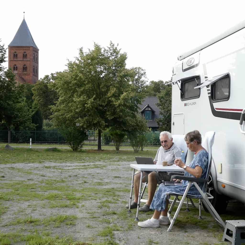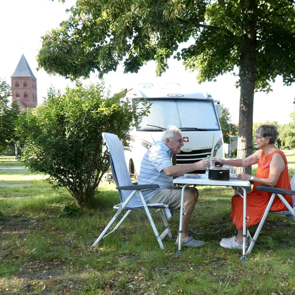 Es gibt auch hier wieder anregende Gespräche mit Camper-Nachbarn. Insbesondere mit Uta und Klaus von Usedom haben wir es lustig, da Klaus und Michael den gleichen Humor mitbringen.