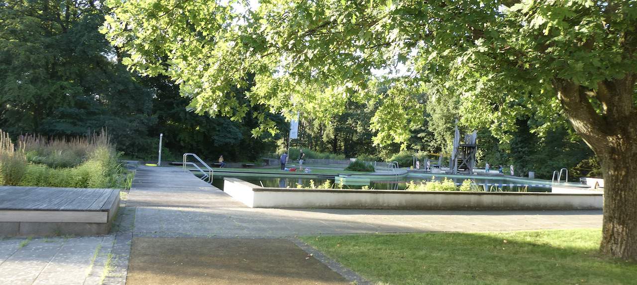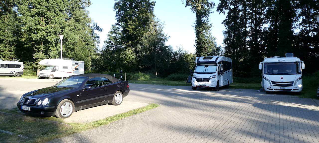 Der Stellplatz liegt vor einem kleinen Freibad.