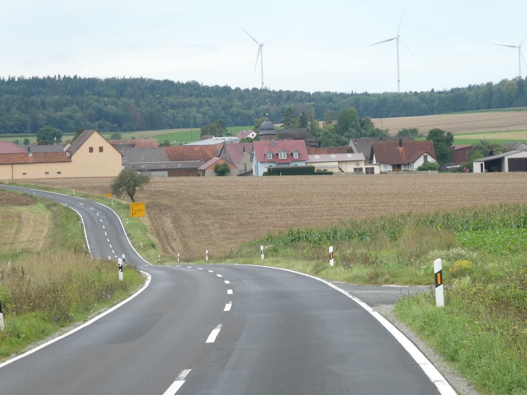 Die Route führt durch eine hügelige Gegend mit kleinen Weindörfern. Wir sehen Ackerbau und Viehzucht und verfallende Burgen, aber kaum Industrie oder grössere Gewerbebetriebe. Trotzdem wirkt diese Gegend nicht verarmt.
