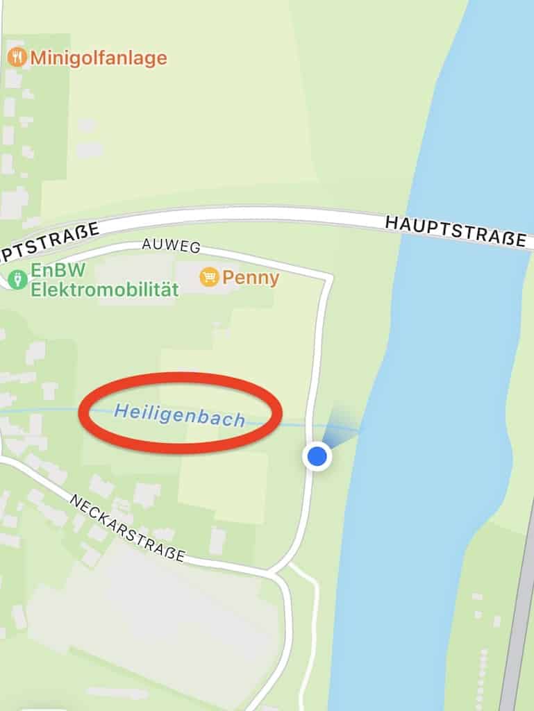 Gleich neben dem Stellplatz fliesst der «Heiligenbach». Wir können allerdings nicht in Erfahrung bringen, ob ein Bad darin die Erleuchtung bringen würde. Für uns würde so wenig Wasser sowieso nicht genügen.