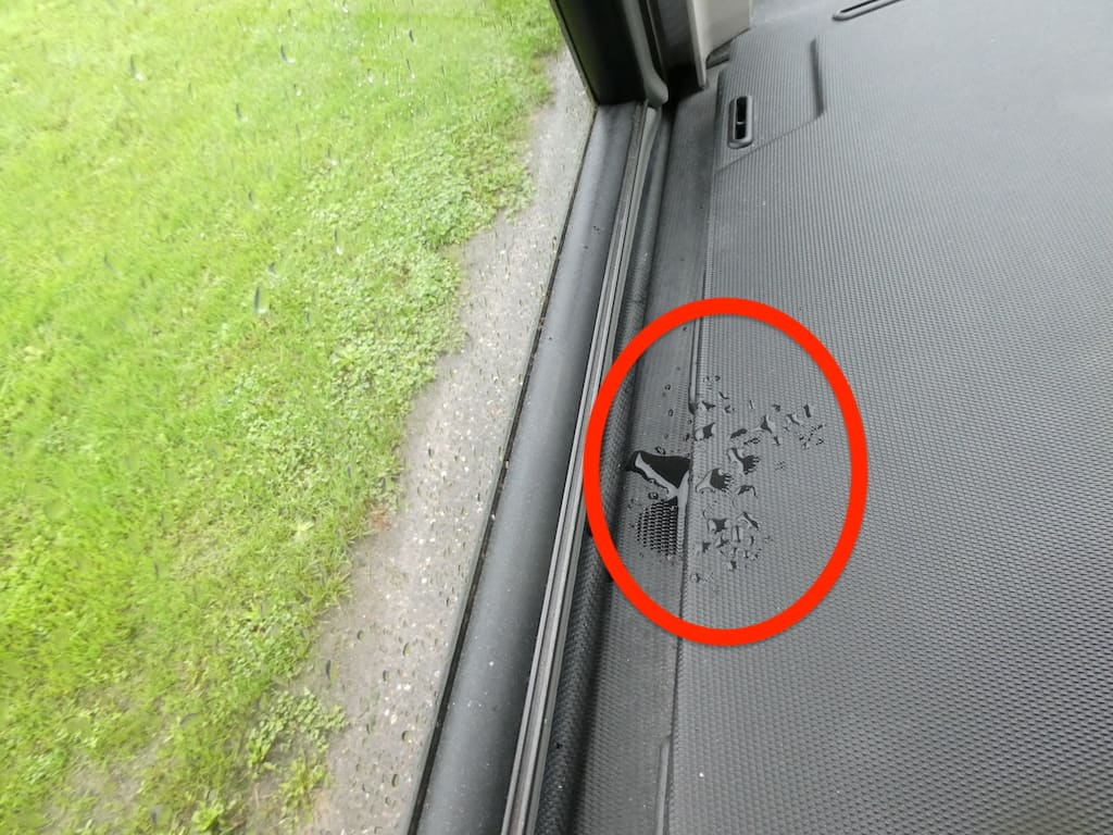 Heute führt uns die Feuchtigkeit hinter der Verkleidung zur Ursache. Das Wasser kommt über eine undichte Positionsleuchte ins Innere. Bei der jährlichen Dichtheitskontrolle bei LMC war das nie zu erkennen gewesen.