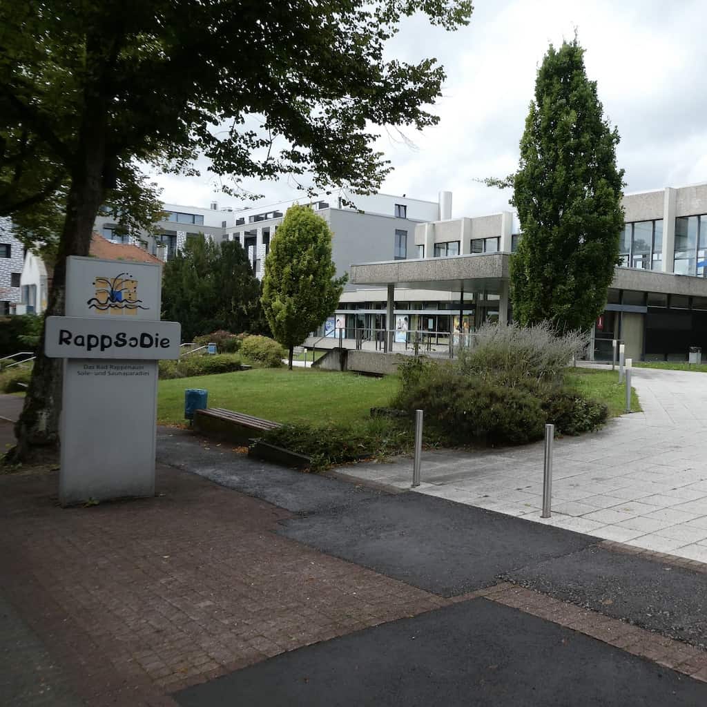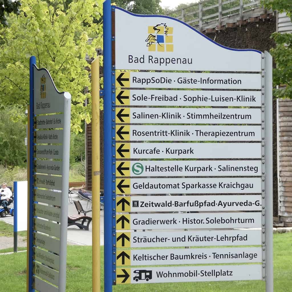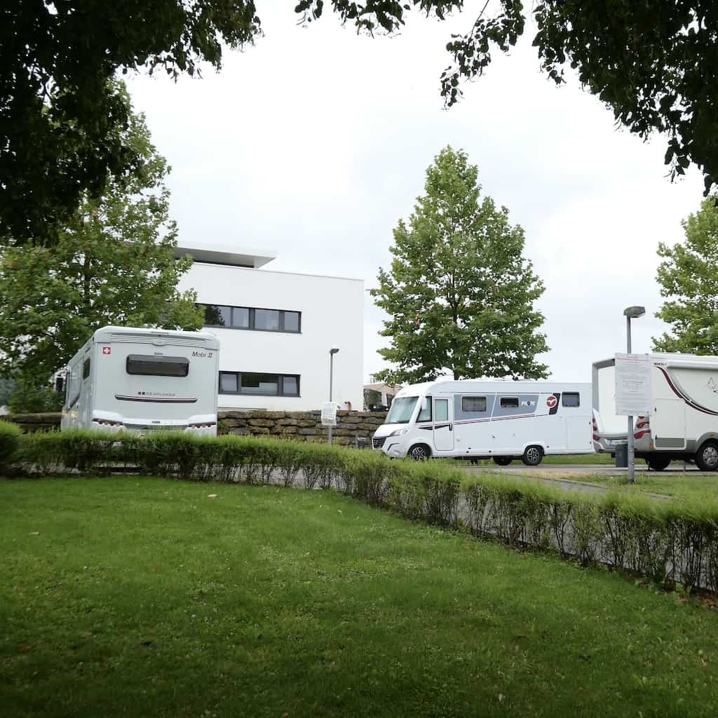 Bad Rappenau hat einen hübsch oberhalb eines Parks gelegenen Stellplatz. Die Anmeldung und Bezahlung der Gebühr ist jedoch (noch) etwas umständlich. Dazu muss man zur etwa 500 Meter entfernten Tourist-Information in der «RappSoDie» (das Sole- und Sauna-Paradies) laufen. Und deren Öffnungszeiten stimmen blöderweise nicht mit den Angaben auf dem Stellpatz überein. Aber wie wir beim zweiten Anlauf erfahren, soll das Bezahlen bald via Parkautomat kundenfreundlicher möglich sein.