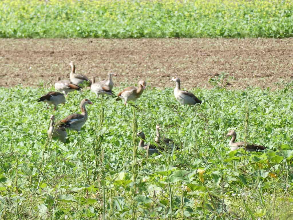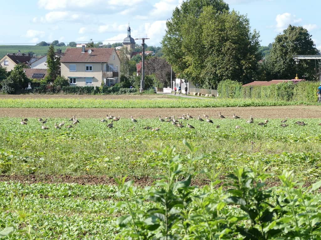 Auf dem Feld neben dem Stellplatz macht ein ganzer Schwarm Kanadagänse Rast und verpflegt sich gütlich. Die Vögel kommen aus Scandinavien und werden hier wohl überwintern wollen, sofern es nicht zu kalt wird. Der Landwirt hat sicher weniger Freude an den Eindringlingen.