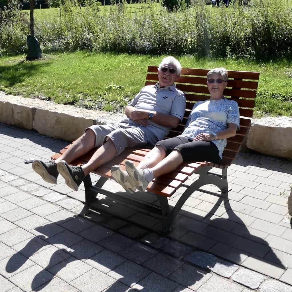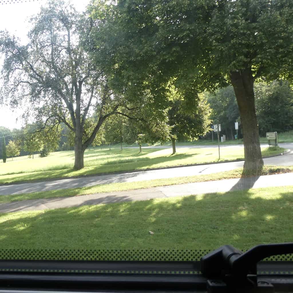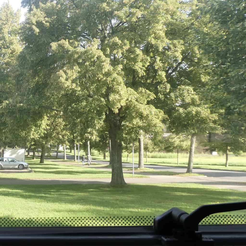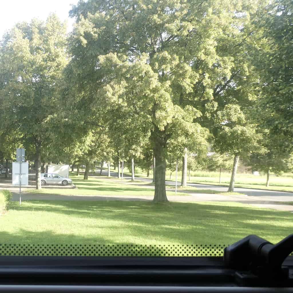 Wir kamen gestern, d.h. es war schon heute, erst um 02:00 ins Bett. Entsprechend sind wir heute etwas später aufgestanden. Auf diesem Stellplatz schauen wir aus unserer Hecksitzgruppe auf drei Seiten sehr schön ins Grüne. Ingrid kommt ganz überraschend noch einmal bei uns vorbei und bei einem Kaffee können wir uns noch eine Weile unterhalten.