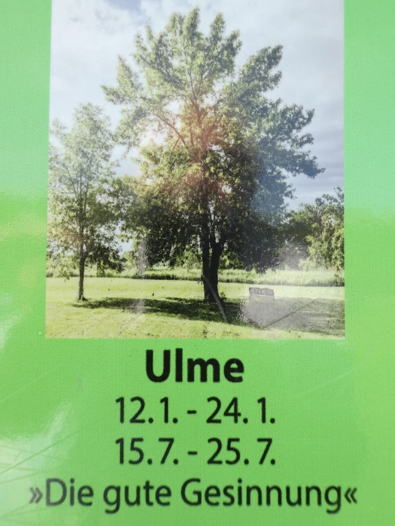 Renate ist mit dem 26. Dezember ein Apfelbaum und «Die Liebe». Michael ist mit dem 19. Januar eine Ulme und «Die gute Gesinnung». Das hört sich doch gut an. Damit können wir uns zufrieden geben.
