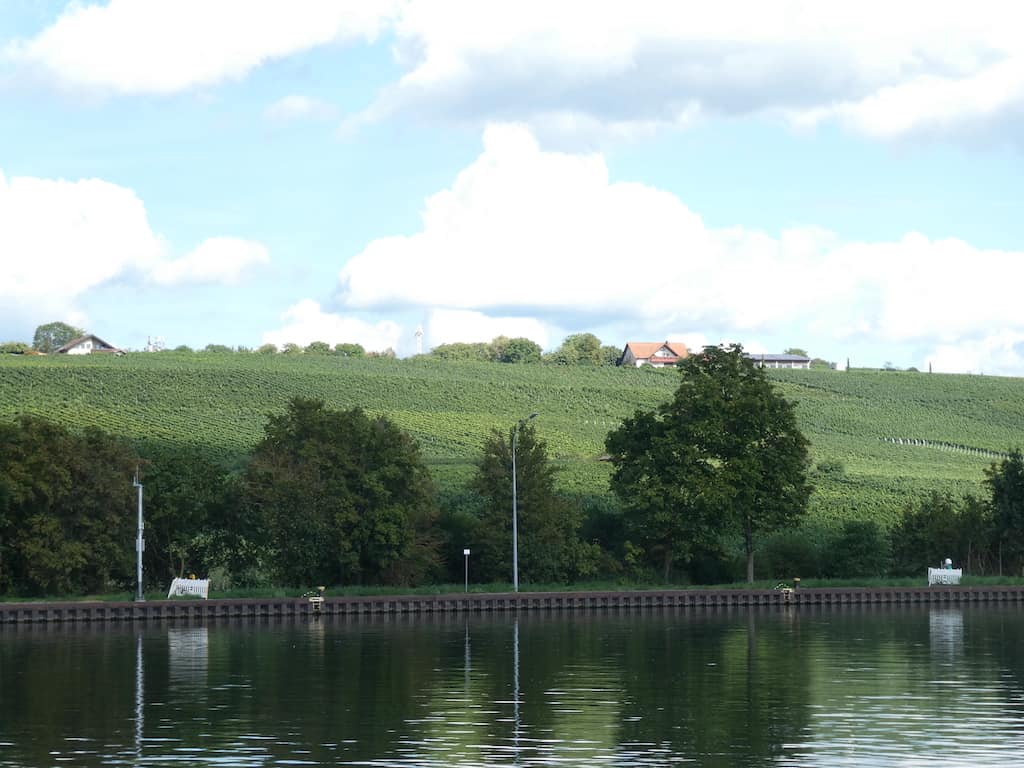 Der Stellplatz in Lauffen befindet sich nahe am Neckar mit Blick in die Weinlandschaft.