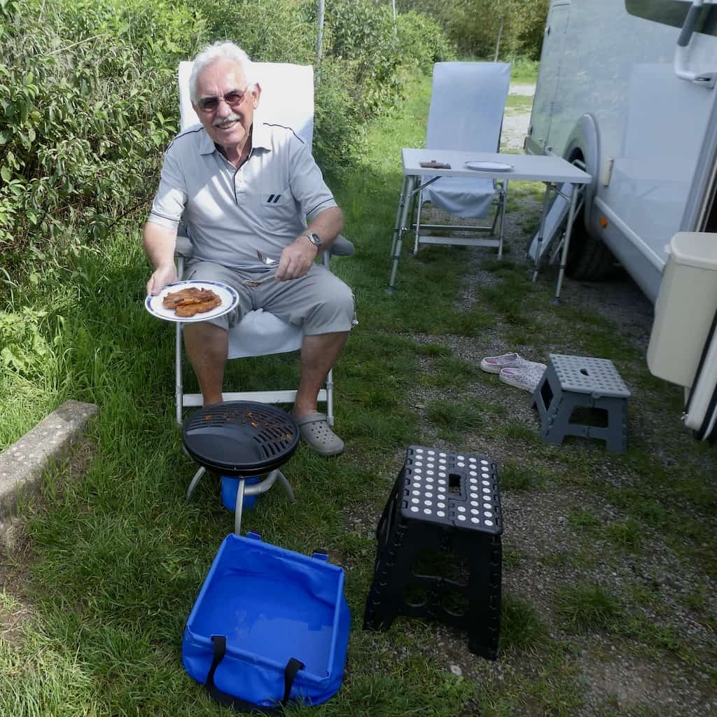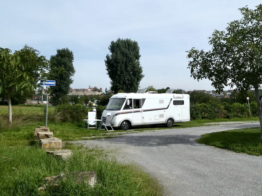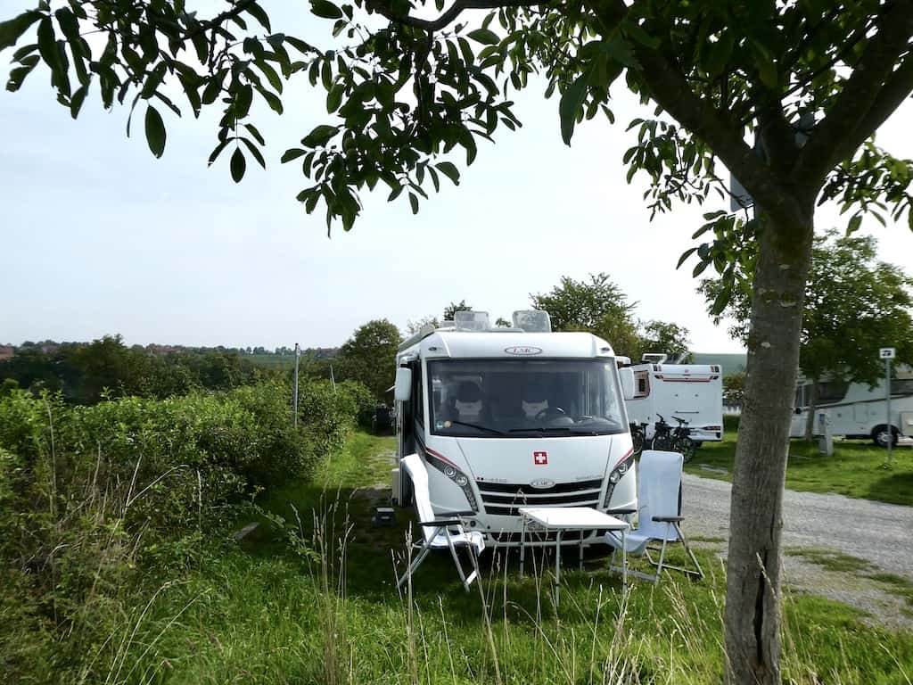 Dann fahren wir auf den Stellplatz nach Bönnigheim. Dort wollen wir uns mit Pit, dem Mann von Michaels Nichte treffen. Die Stellplatzgebühr kann man am Sonntag nach 17 Uhr nicht mehr loswerden. Beim letzten Mal konnte man hier noch via Twint bezahlen. Nun muss man ziemlich weit laufen, sofern überhaupt geöffnet ist.